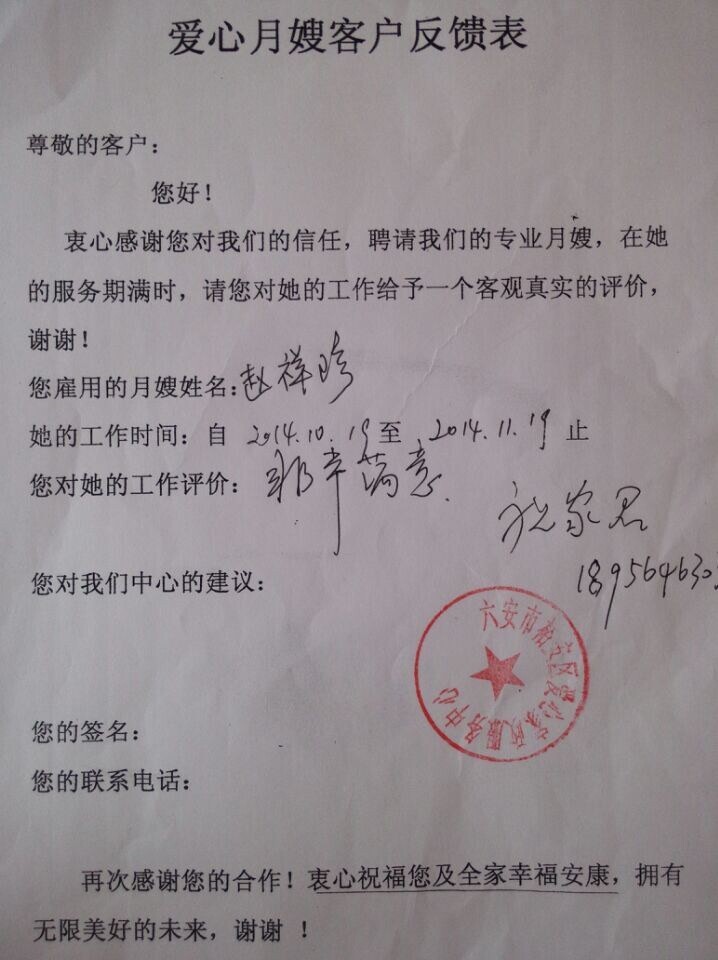 六安市爱心月嫂服务中心 联系人:李永平 电话:13705649270 手机:13705649270 传真:13705649270