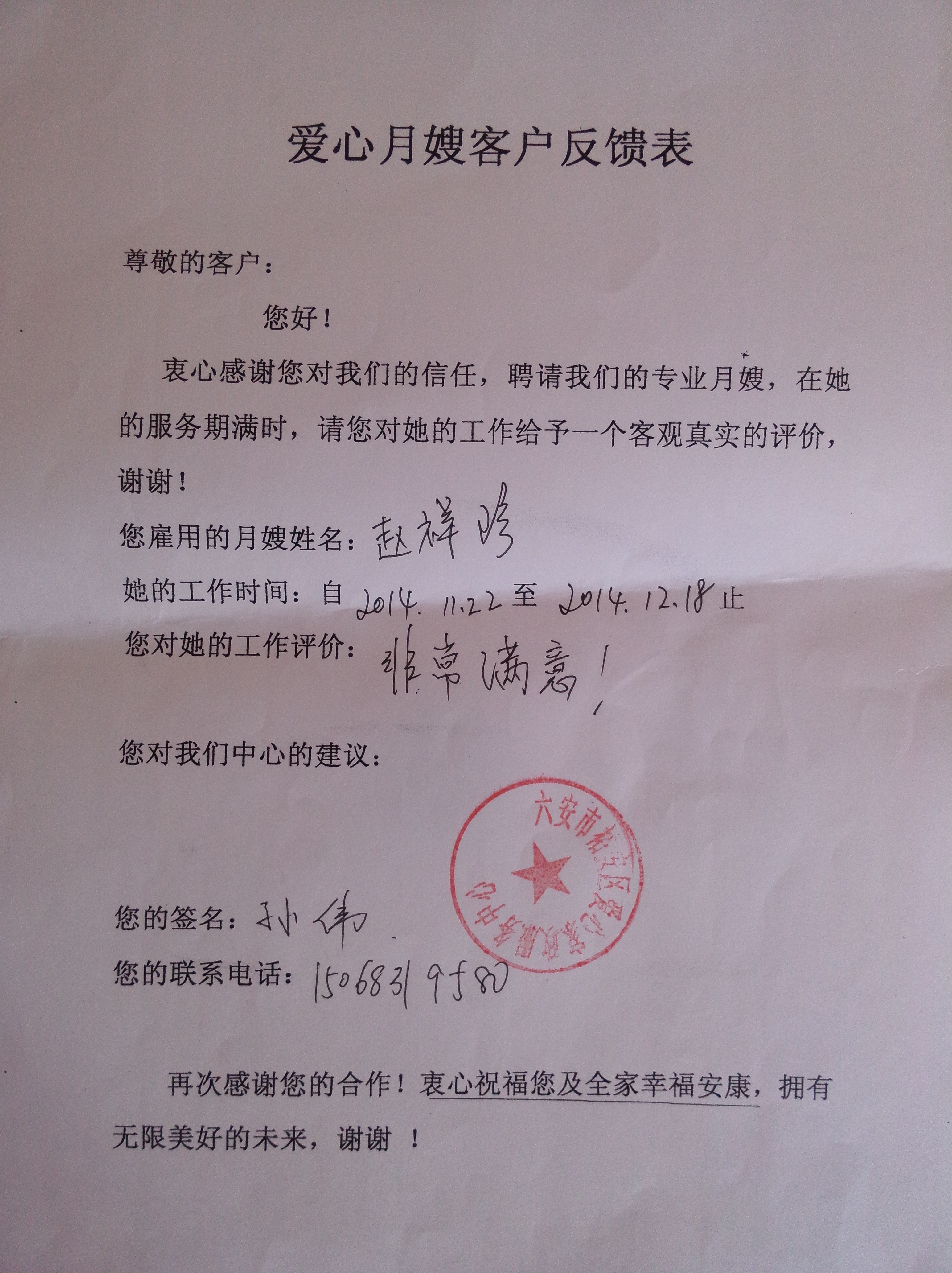 六安市爱心月嫂服务中心 联系人:李永平 电话:13705649270 手机:13705649270 传真:13705649270