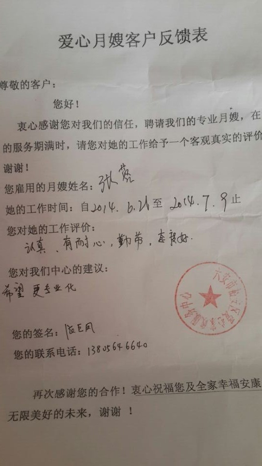 六安市爱心月嫂服务中心 联系人:李永平 电话:13705649270 手机:13705649270 传真:13705649270